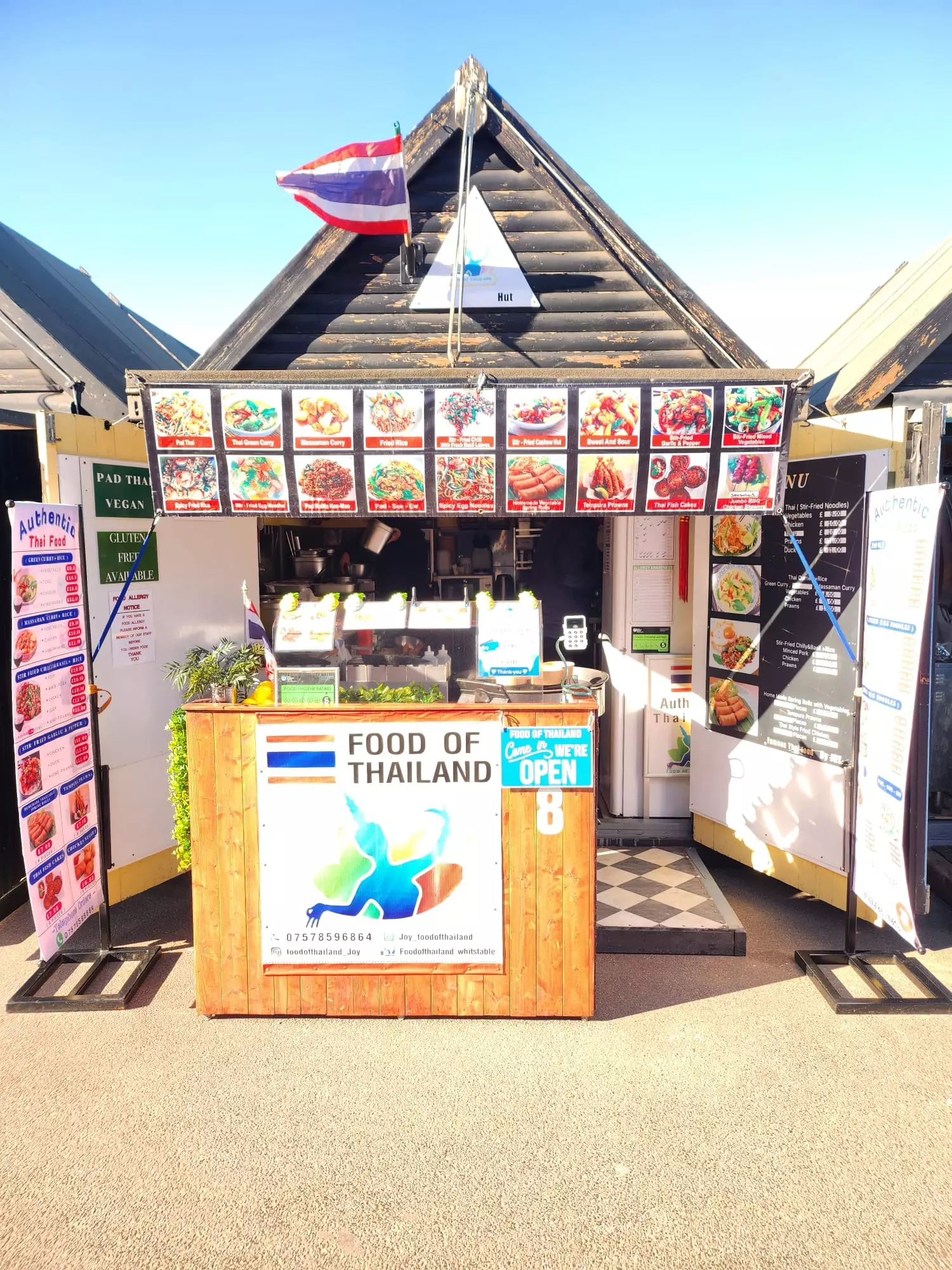 A husband & wife team preparing authentic Thai food in Hut No 8.